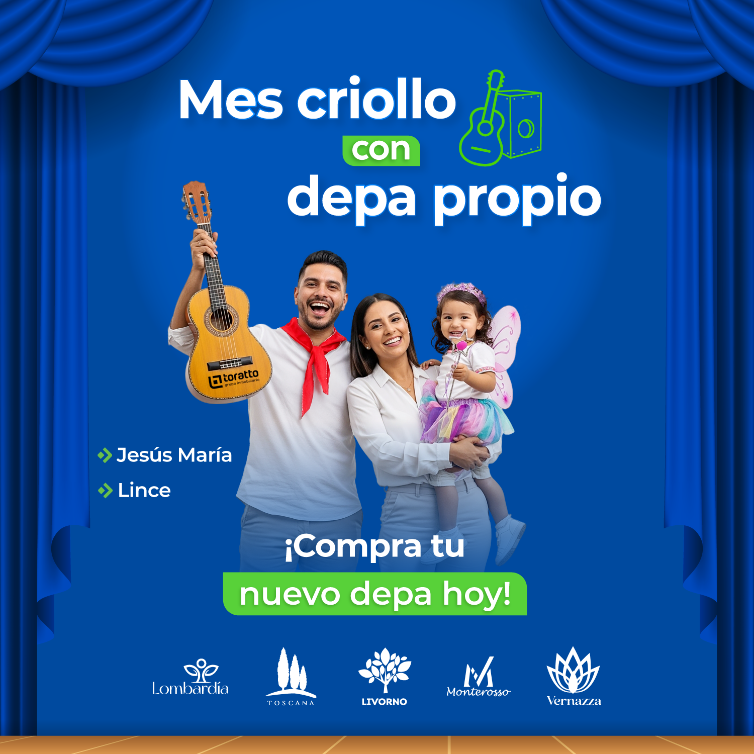 Mes criollo con depa propio en Veranza Estrena tu nuevo hogar en Jesús María, a solo minutos del C.C. Real Plaza Salaverry, y vive rodeado de tradición, cultura y modernidad. Vive en Jesús María límite con San Isidro 🏠 Departamentos de 1, 2 y 3 dormitorios desde 38 m² hasta 139 m² 🏗️ Proyecto ...